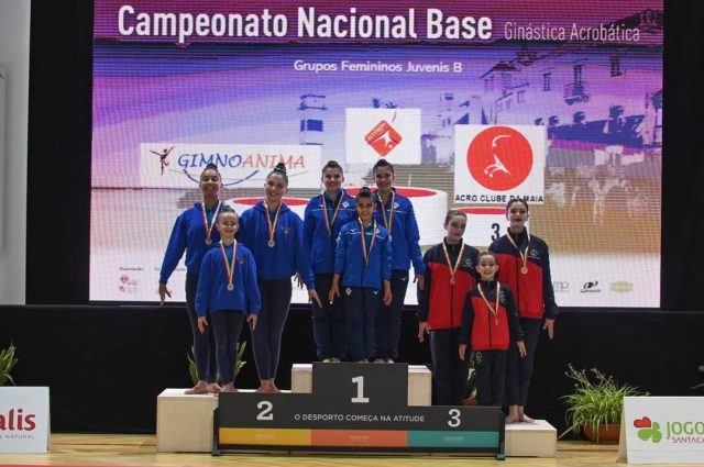 Por sua vez, a classe de Acrobática da Gimnoanima esteve presente no Campeonato Nacional Base. Nesta competição, salienta-se o 3º lugar do pódio do par misto sénior, Adriana Marques e João Pina, e o 2º lugar do trio juvenil Carolina Francisco, Isis Pereira e Verónica Ursu.