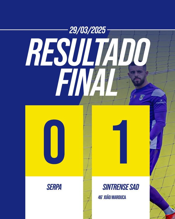 O Sintrense foi ganhar a Serpa, por 1-0, e manteve o ritmo vitorioso na Série D do Campeonato de Portugal. João Marouca marcou o único golo do jogo à passagem do minuto 46 e gelou as bancadas do Campo Manuel Baião.