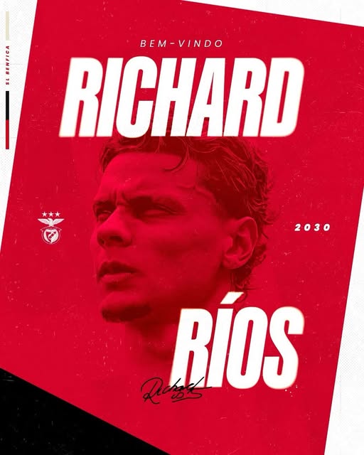 Richard Ríos, médio de 25 anos, assinou contrato até junho de 2030 com Benfica. O jogador deixa o Palmeiras a troco de 27 milhões de euros e fica blindado por uma cláusula de rescisão de 100 milhões de euros.